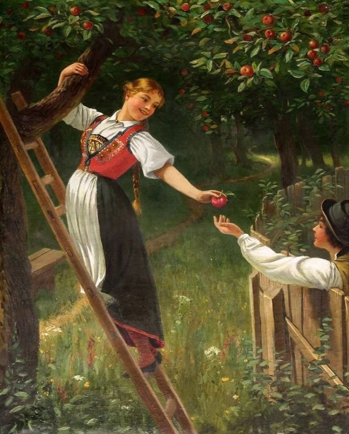 Art: "Apple Orchard", Hans Dahl (1849 - 1937), Norwegian