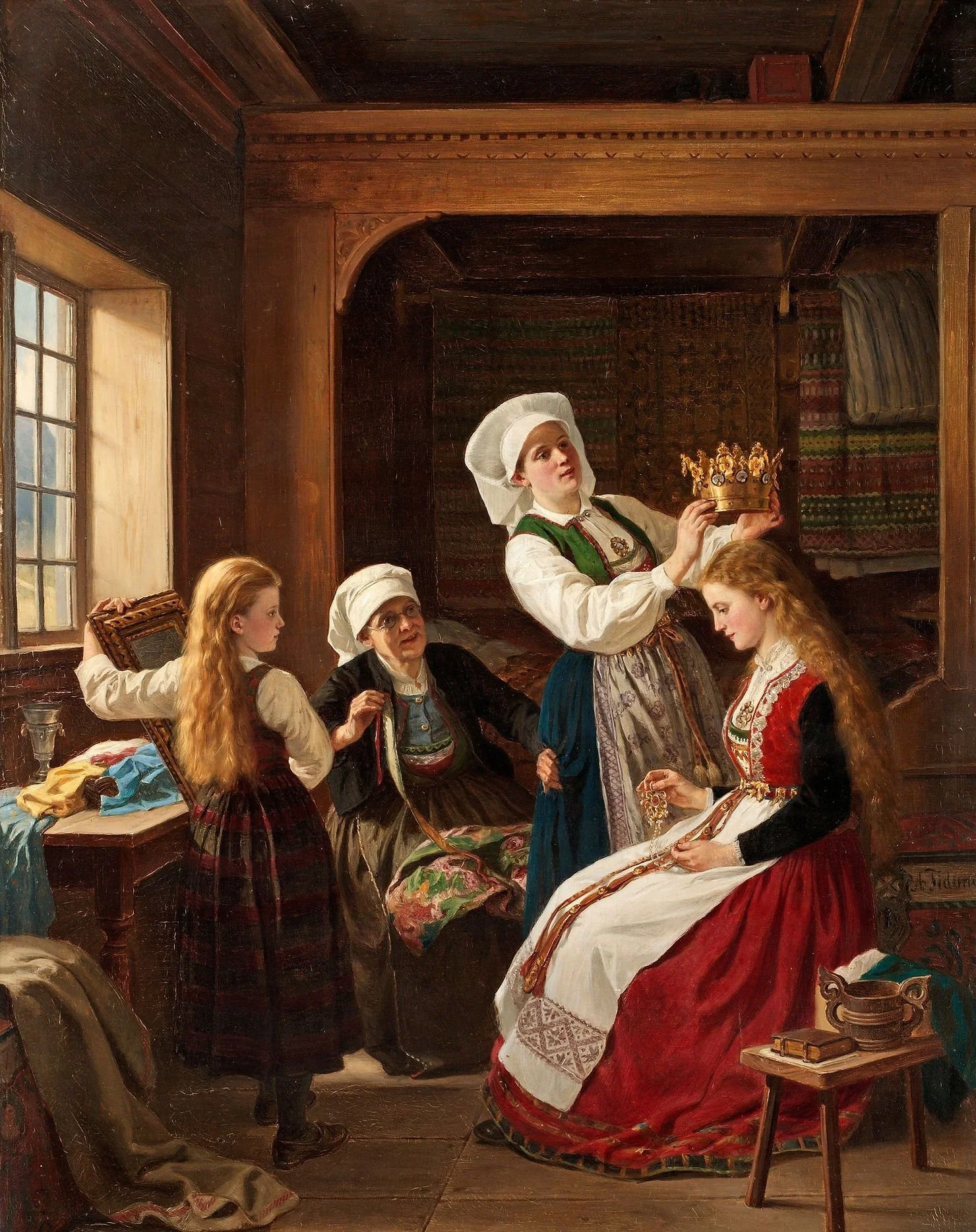 Art: "Brudepynting", Adolph Tidemand (1814 - 1876), Norwegian