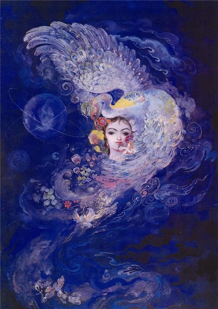 Art on the left: Mahmoud Farshchian (1930), Iranian
