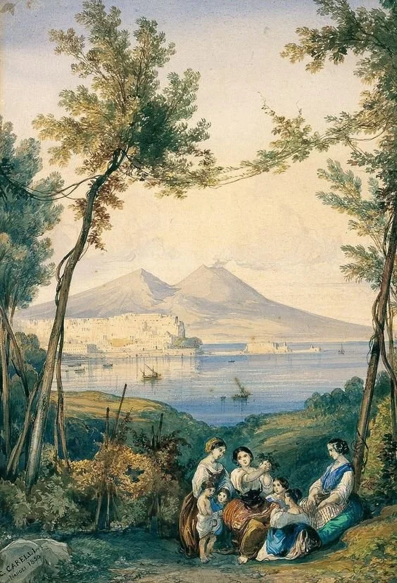"Women and Children in the Woods with Vesuvio in the Background," Gonsalvo Carelli (1818- 1900), Italian