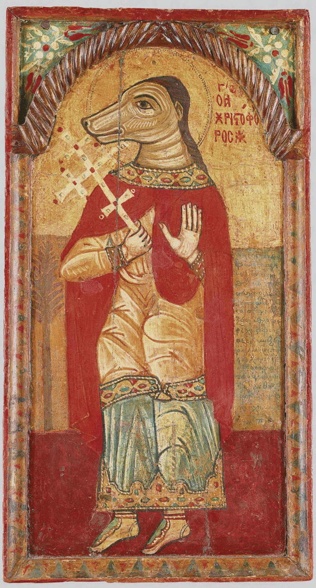Saint Christopher, a Christian saint is often depicted as coming from this hybrid dog-human race. He was described of an enormous size, with a head of a dog instead of a man. This was apparently a characteristic of the Marmaritae, a Berber tribe of Cyrenaica. The famous traveller Ibn Battuta also described such a race who live on an island between India and Sumatra — most likely they were Mentawai people, who practiced teeth sharpening. There were many other myths and legends about the cynocephali, but the purpose of mentioning them here is to illustrate how the artistic depiction of the strange, and weird, was also tied to depiction of legendary, marvellous and exotic.