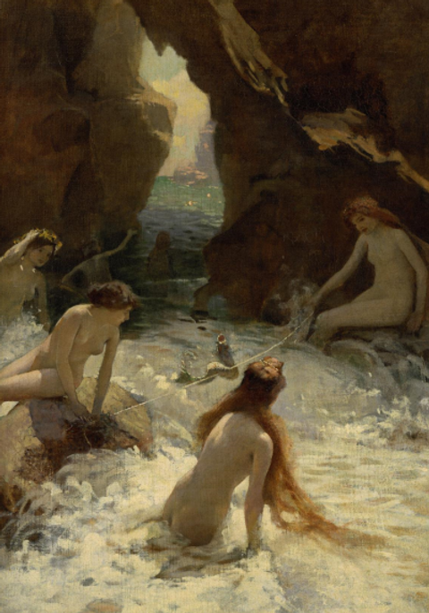 Art on the left: "Idyll of the Sea", Abbey Altson (1864 - 1950), British